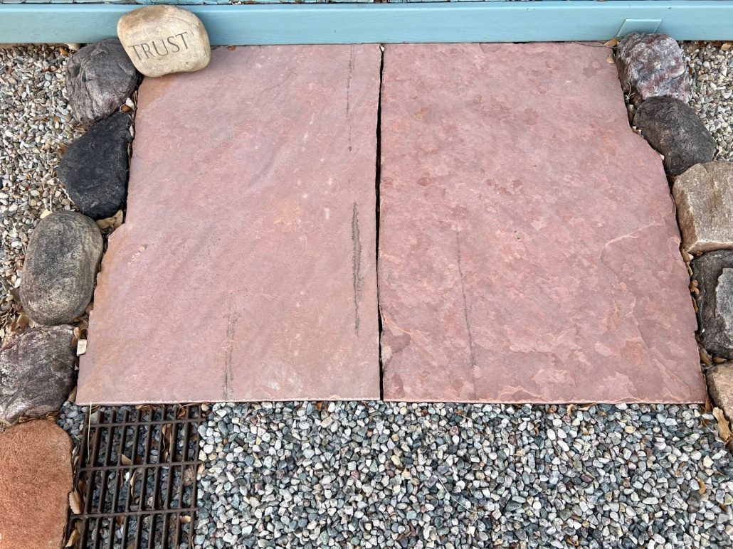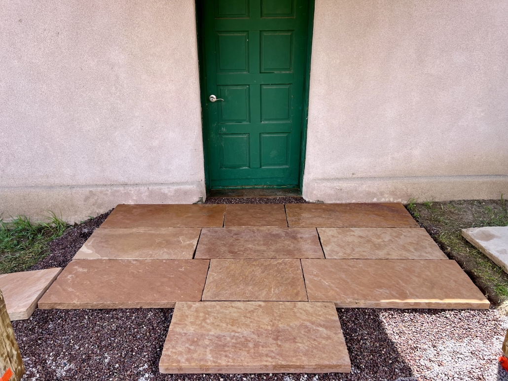 The joinery, or gaps, between patio stone can be wide enough to plant deliberately such as with creeping thyme. Gaps between stones can also allow rainwater to seep into ground, which helps reduce soil erosion elsewhere. If no gap is desired, saw cuts can allow surface-to-surface contact.